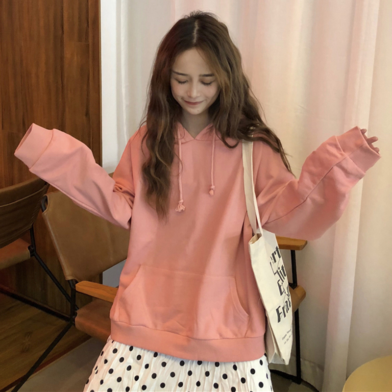 / 純灰色衛衣女秋2018新款長袖藍色韓版慵懶風上衣紫色寬松連帽外套