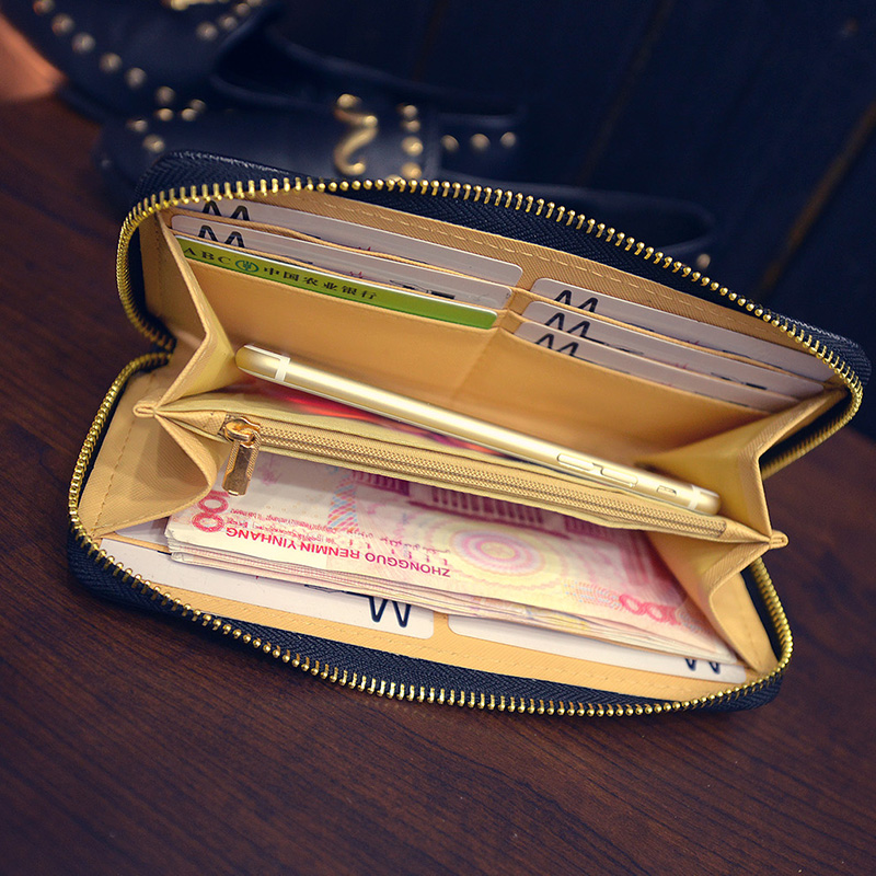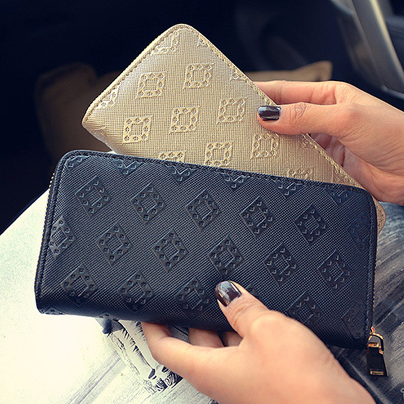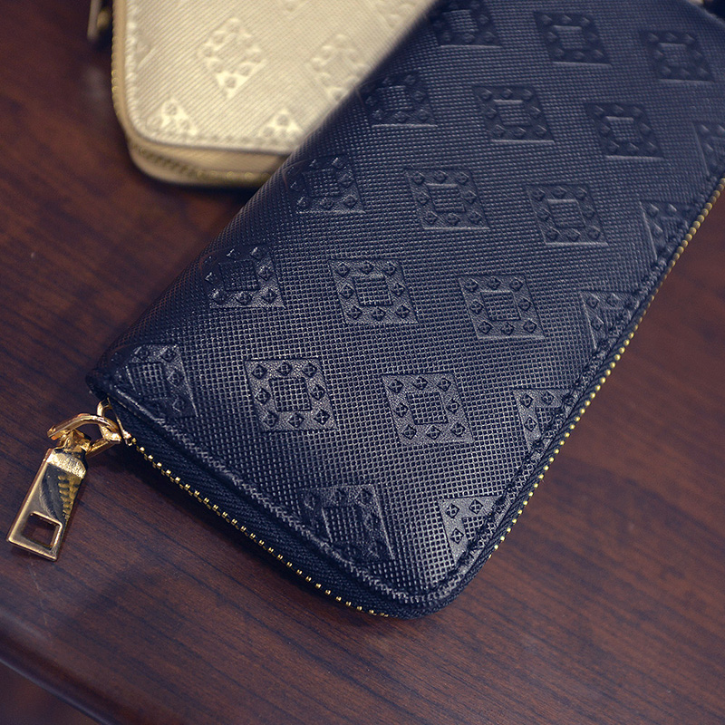 新款時尚錢包女長款 拉鏈大鈔位菱格紋單拉零錢包韓版手拿包