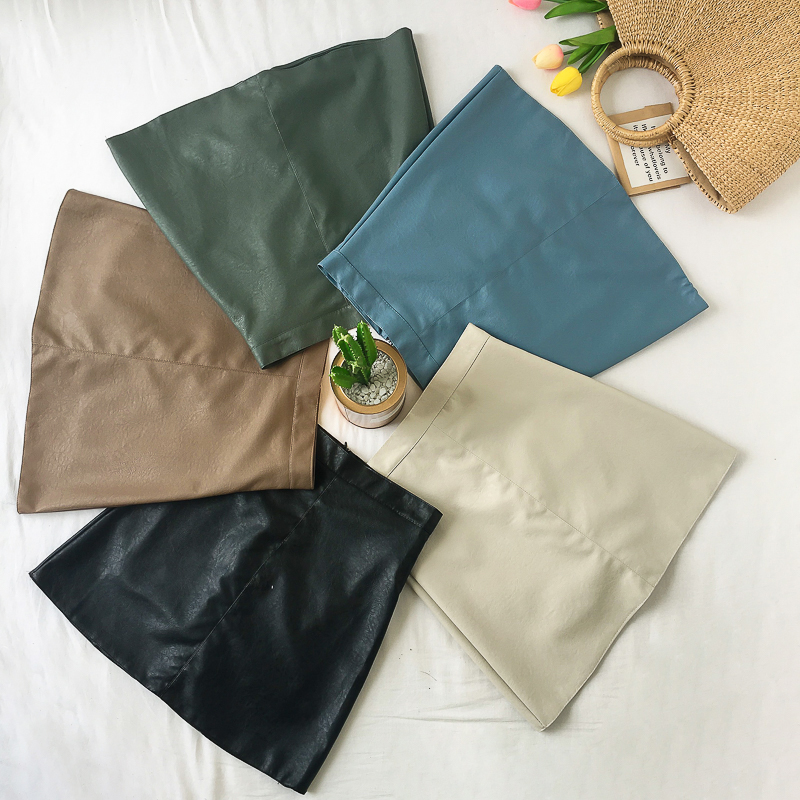 / 高腰PU皮短裙子秋裝女2018新款學生純色A字裙復古黑色包臀半身裙