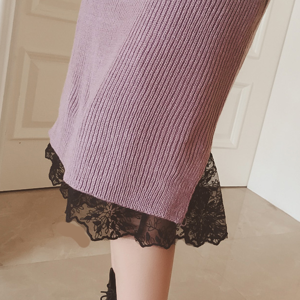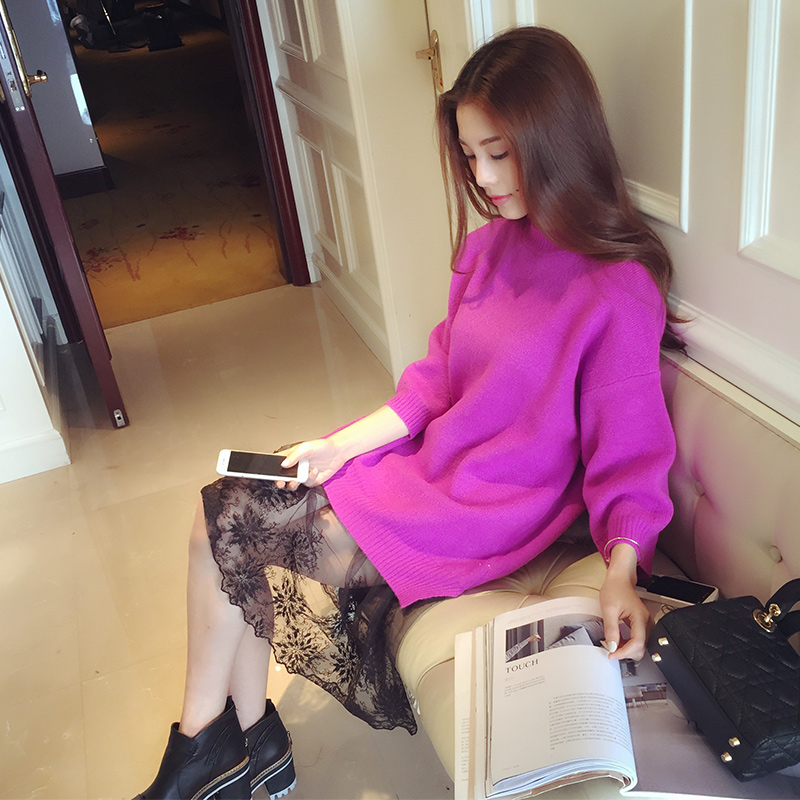 / 2016秋冬裝韓國新款松緊腰內搭蕾絲網紗修身中裙女潮 半身裙子