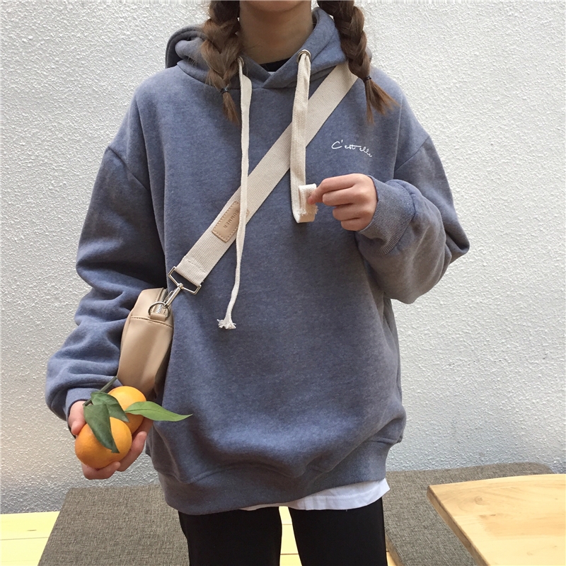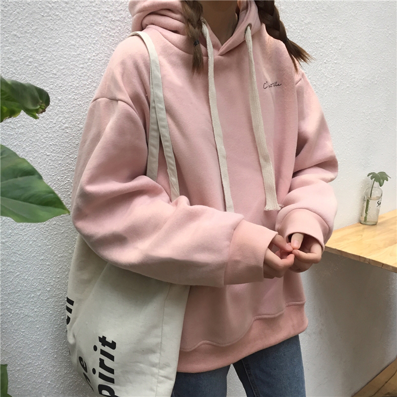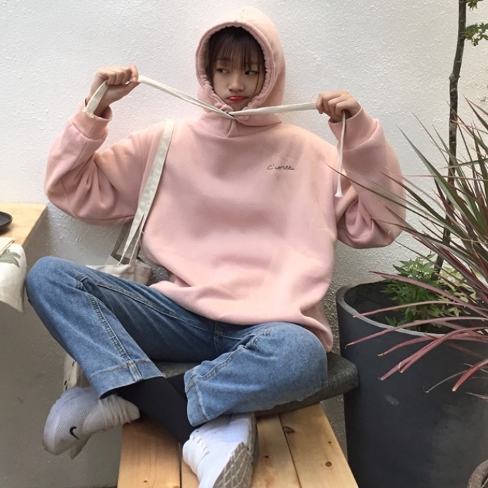 秋冬女裝韓版中長款慵懶風寬松字母連帽加絨pp home超火衛衣外套