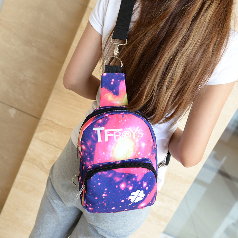 17新韓版星空圖案帆布潮男女胸包運動休閑單肩包斜跨背包胸前包