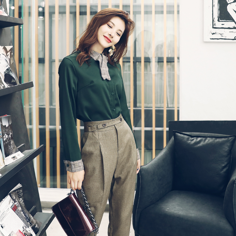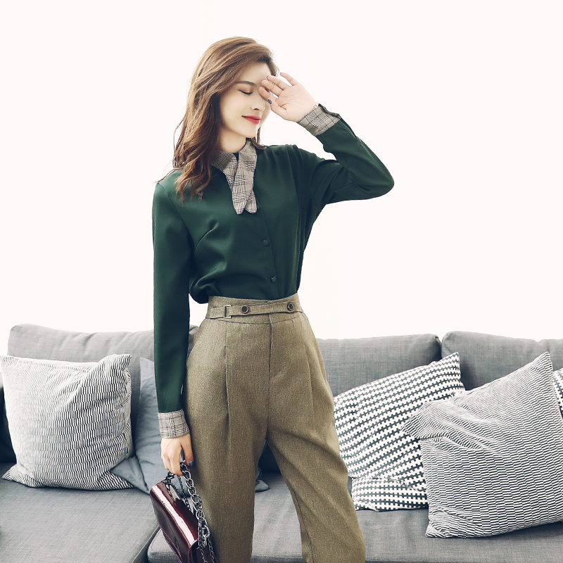 S秀時尚女神范套裝2018秋季新款洋氣名媛氣質高腰九分褲子兩件套