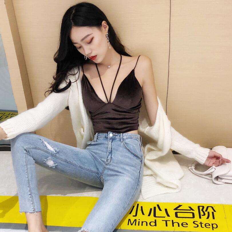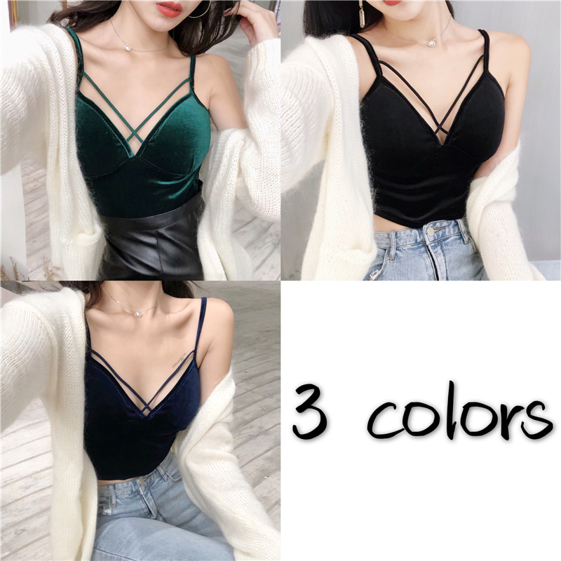 / 2018新款chic性感露背打底絲絨胸墊吊帶裹胸女秋季純色修身背心潮