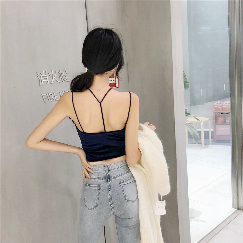 2018新款chic性感露背打底絲絨胸墊吊帶裹胸女秋季純色修身背心潮