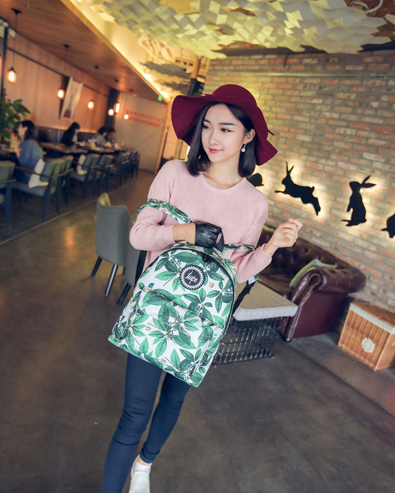 17林小宅同款 綠葉復古樹葉雙肩包軟妹原宿小清新背包旅行包包