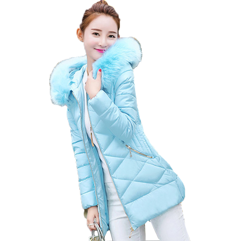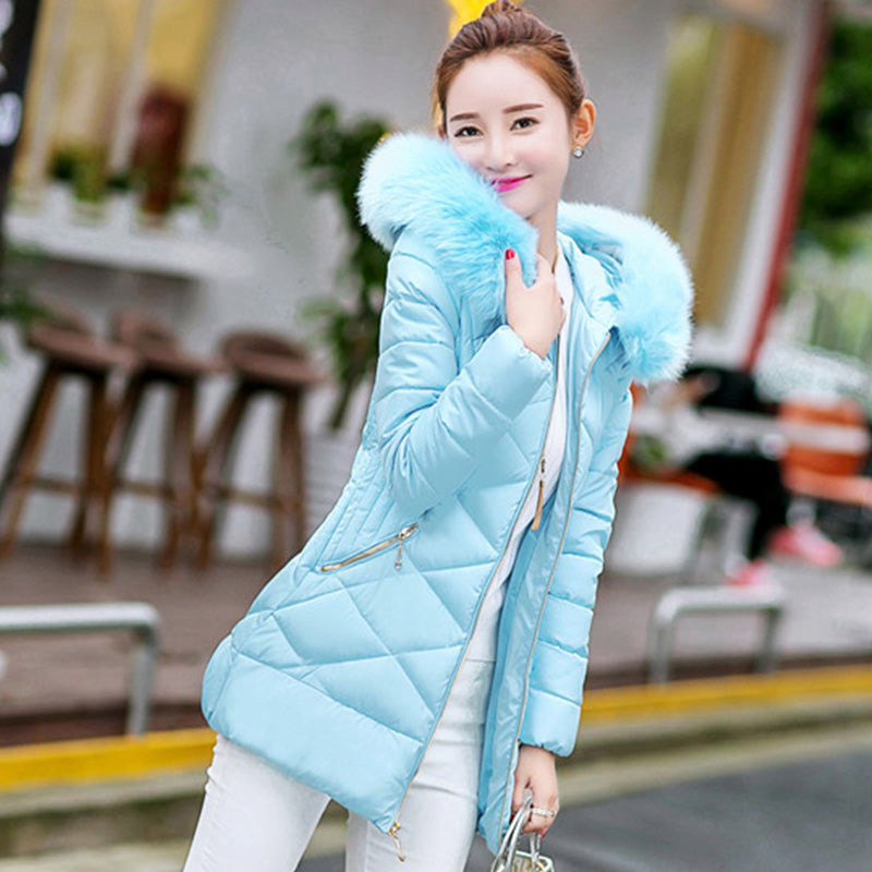 / 新款時尚韓版棉衣女中長款修身顯瘦大碼學生裝大毛領連帽外套