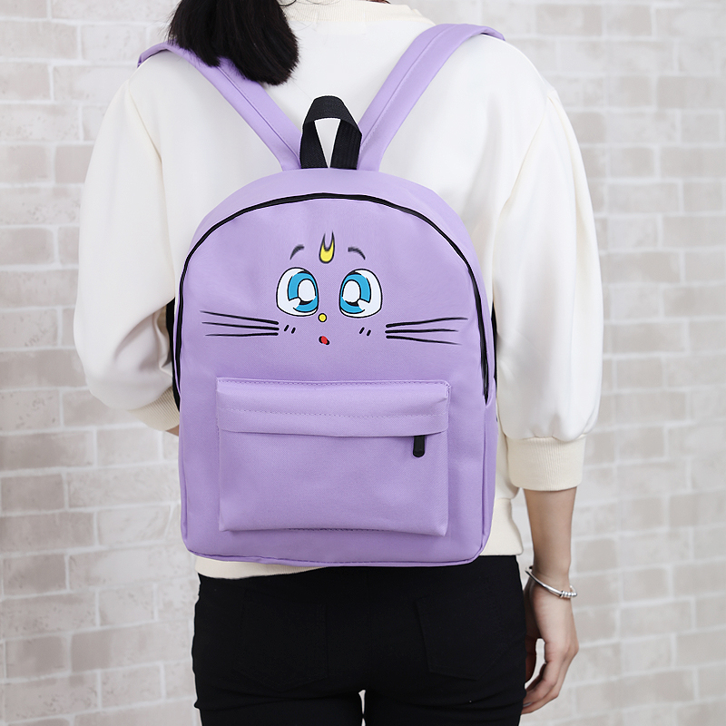 17新款簡約可愛貓咪卡通女生雙肩背包學院風初中學生書包小清新