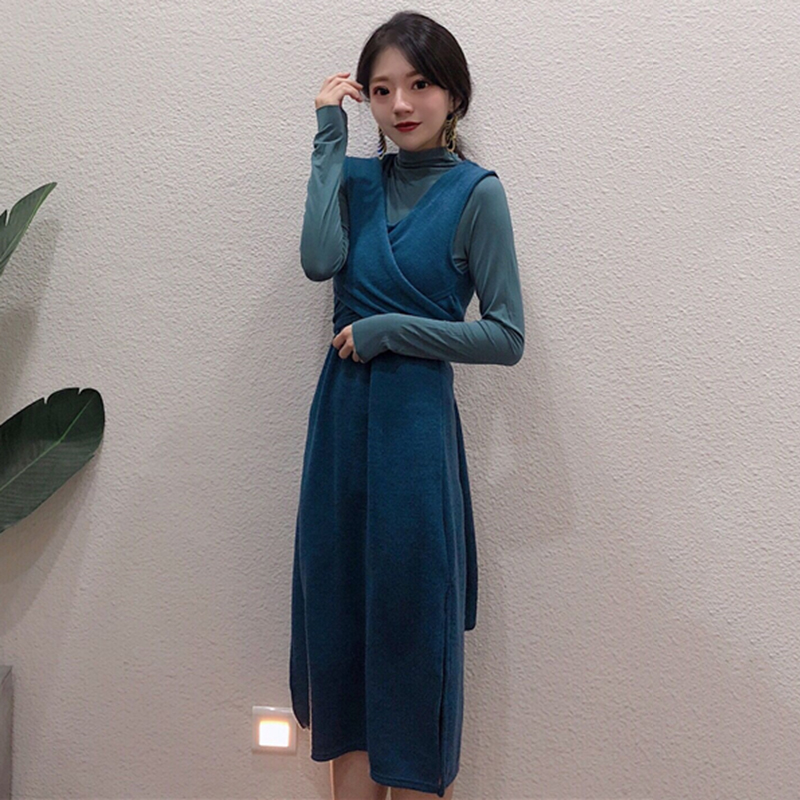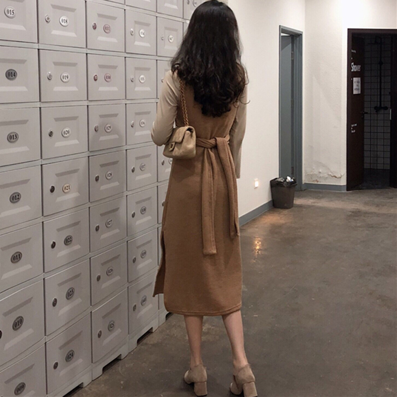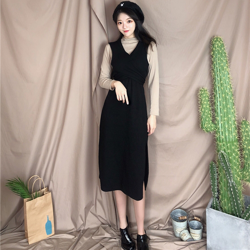 / 復古法式少女氣質背心連衣裙秋冬裝新款韓版寬松顯瘦黑色桔梗裙子