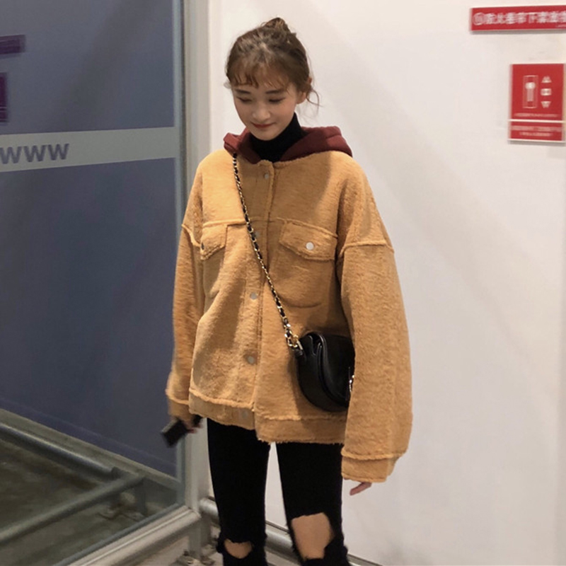 羊羔毛連帽棉衣服女秋冬裝2018新款學生韓版慵懶寬松休閑長袖外套