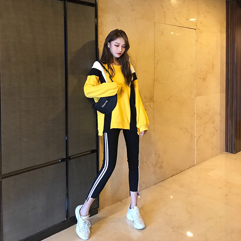 / 小清新時尚學生氣質套裝秋裝新款韓版中長款上衣高腰緊身九分褲