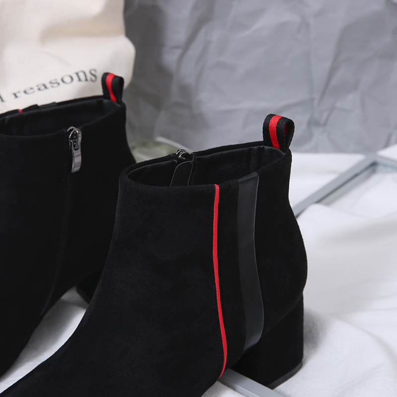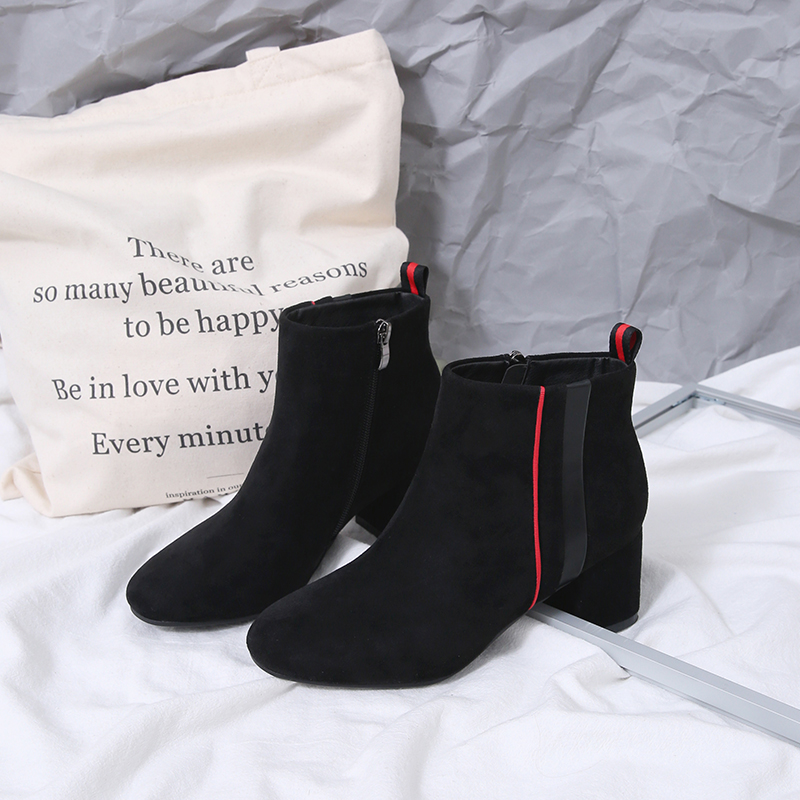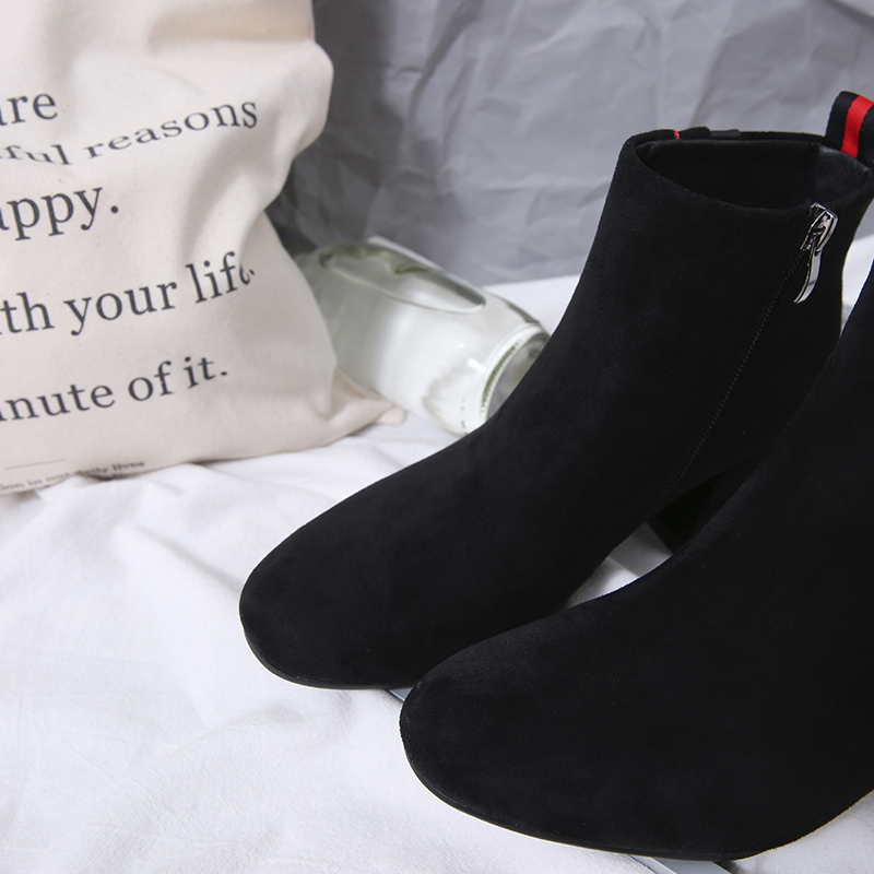 / MG小象拼色粗跟高跟鞋女韓版磨砂圓頭馬丁靴2018秋冬新款個性短靴