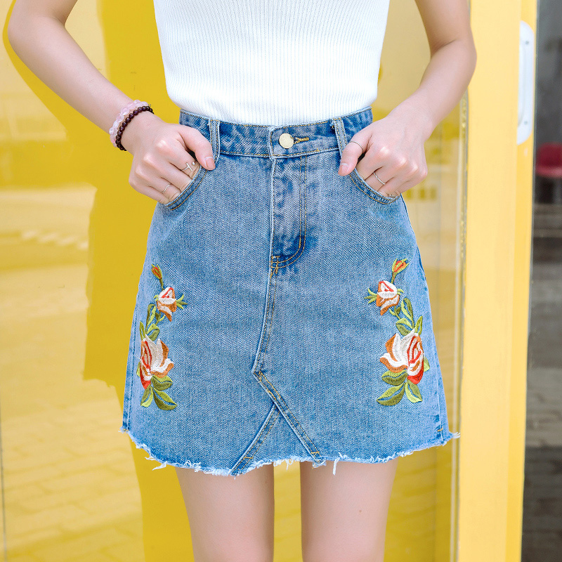/ 牛仔裙夏裝女新款韓版學生刺繡高腰包臀短裙百搭學生半身裙潮