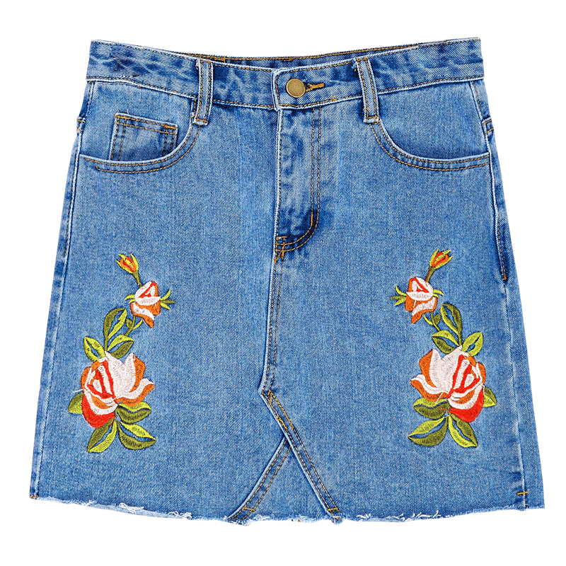 牛仔裙夏裝女新款韓版學生刺繡高腰包臀短裙百搭學生半身裙潮