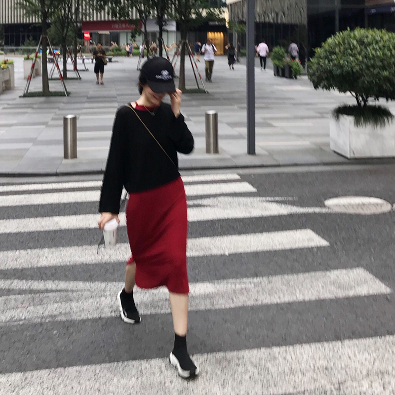 1227淺咖上衣+黑裙|1227黑色上衣+紅裙