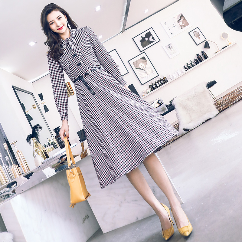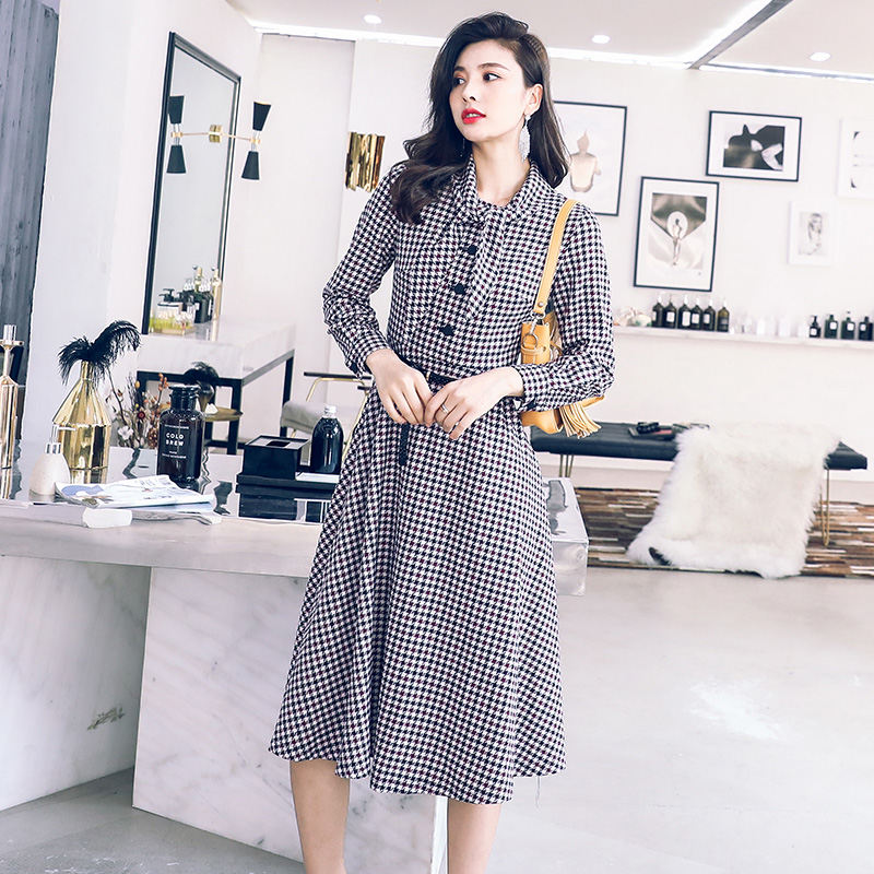 / 名媛氣質秋冬季裙子2018新款網紅時尚韓版顯瘦V領九分袖連衣裙