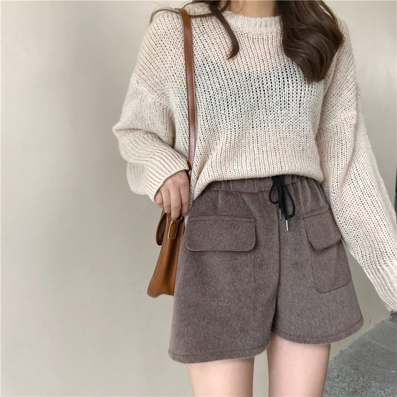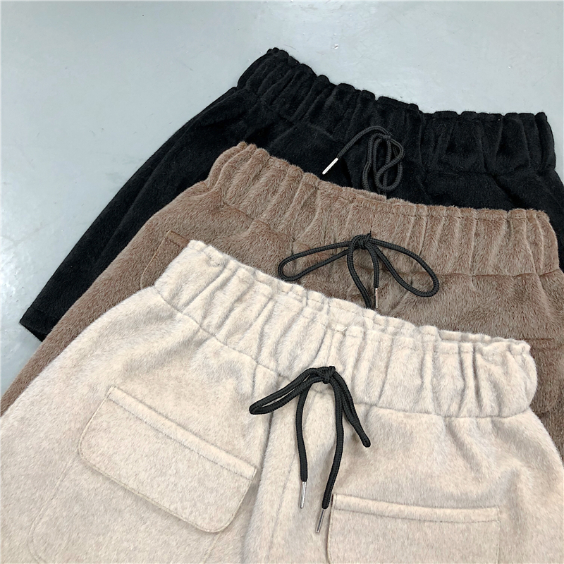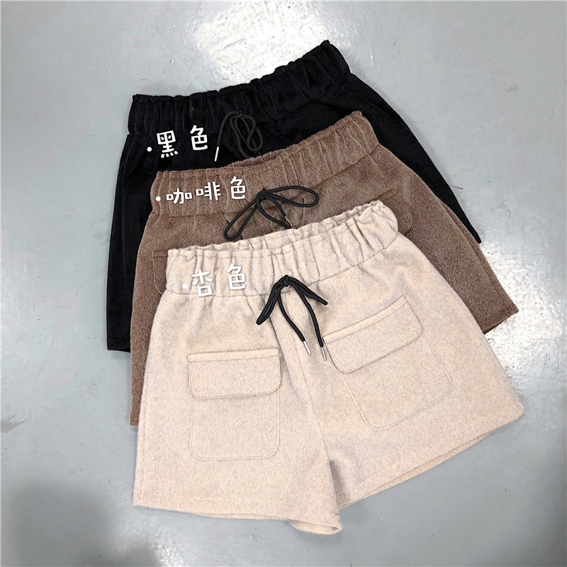 / 秋冬女裝韓版復古寬松仿水貂毛呢闊腿褲高腰加厚直筒褲休閑褲短褲