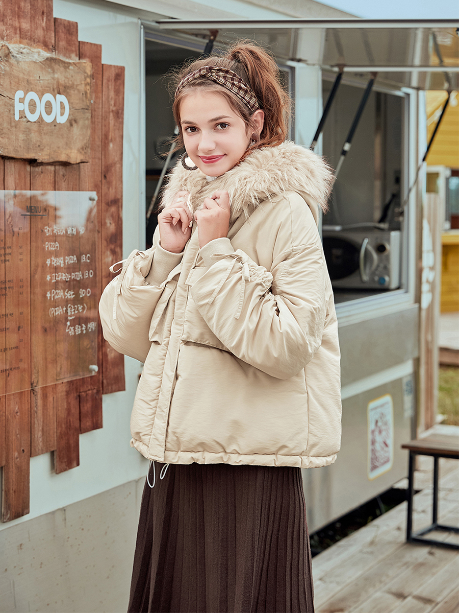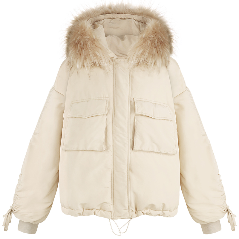 MG小象加厚棉服女2018新款寬松bf冬季外套學生連帽時尚大毛領棉衣