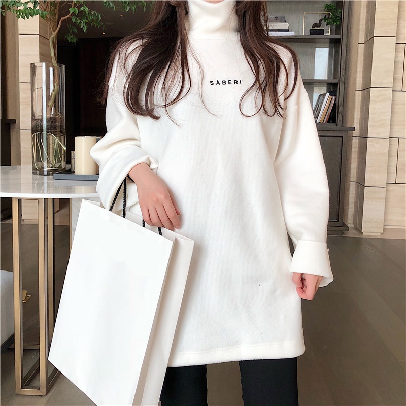 chic上衣慵懶風寬松衛衣女秋冬2018新款氣質半高領中長款字母上衣