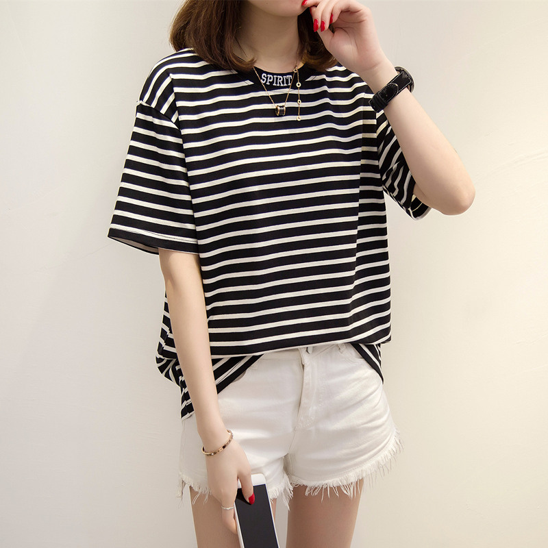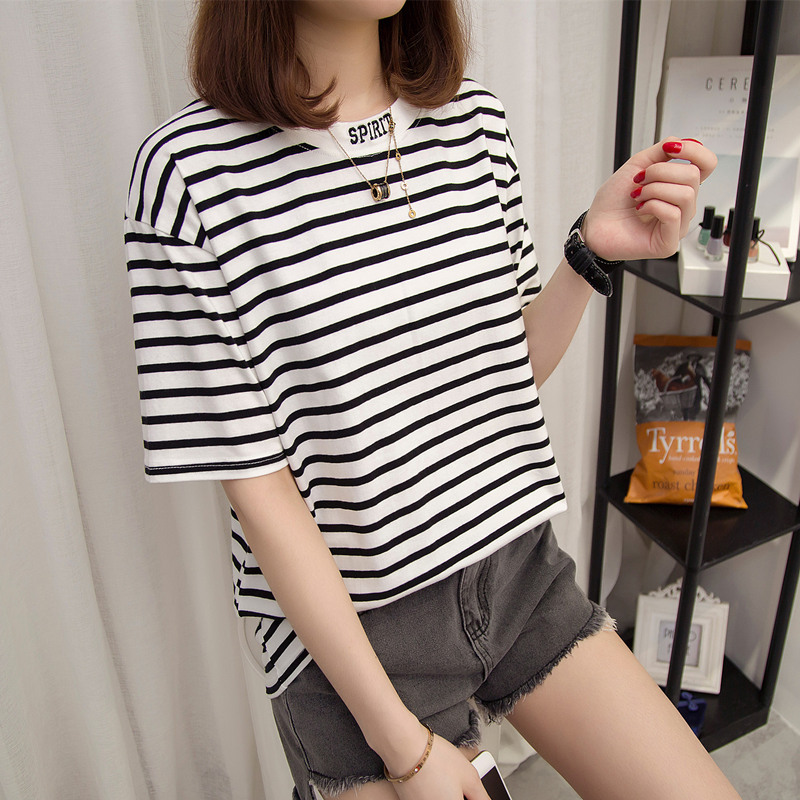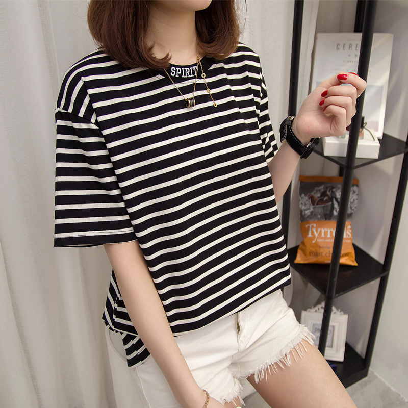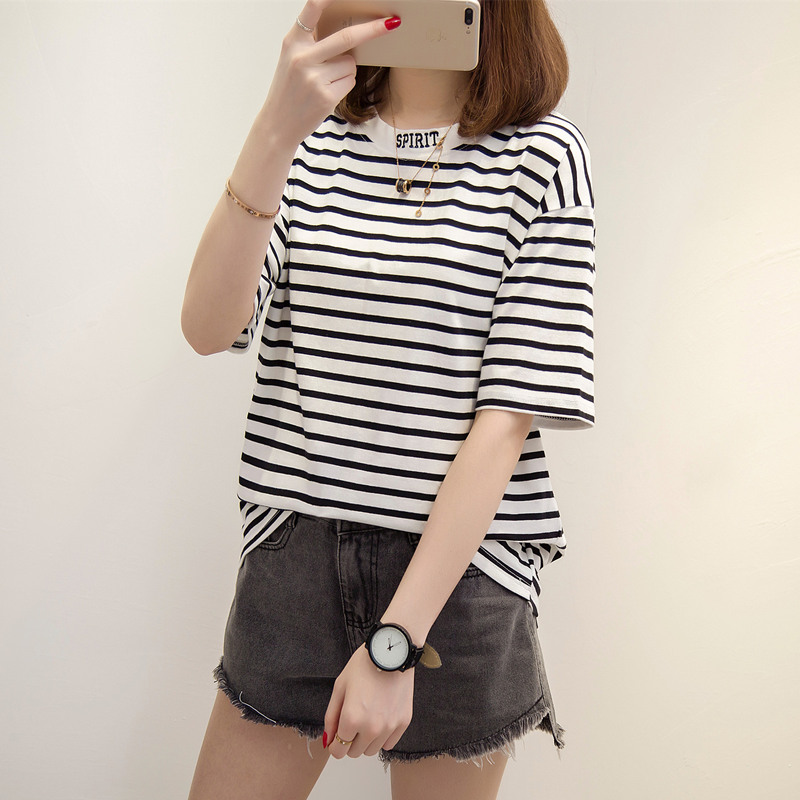 / 條紋t恤女小清新寬松體恤衫短袖bf風韓版心機上衣女夏裝女裝