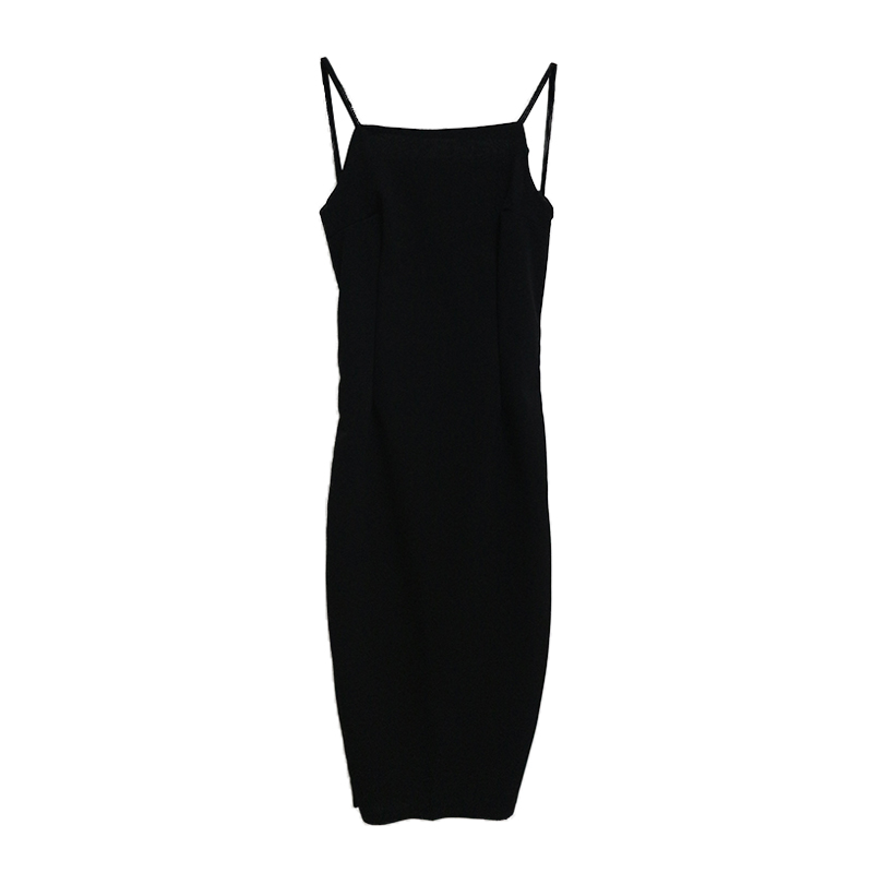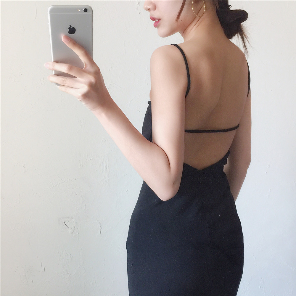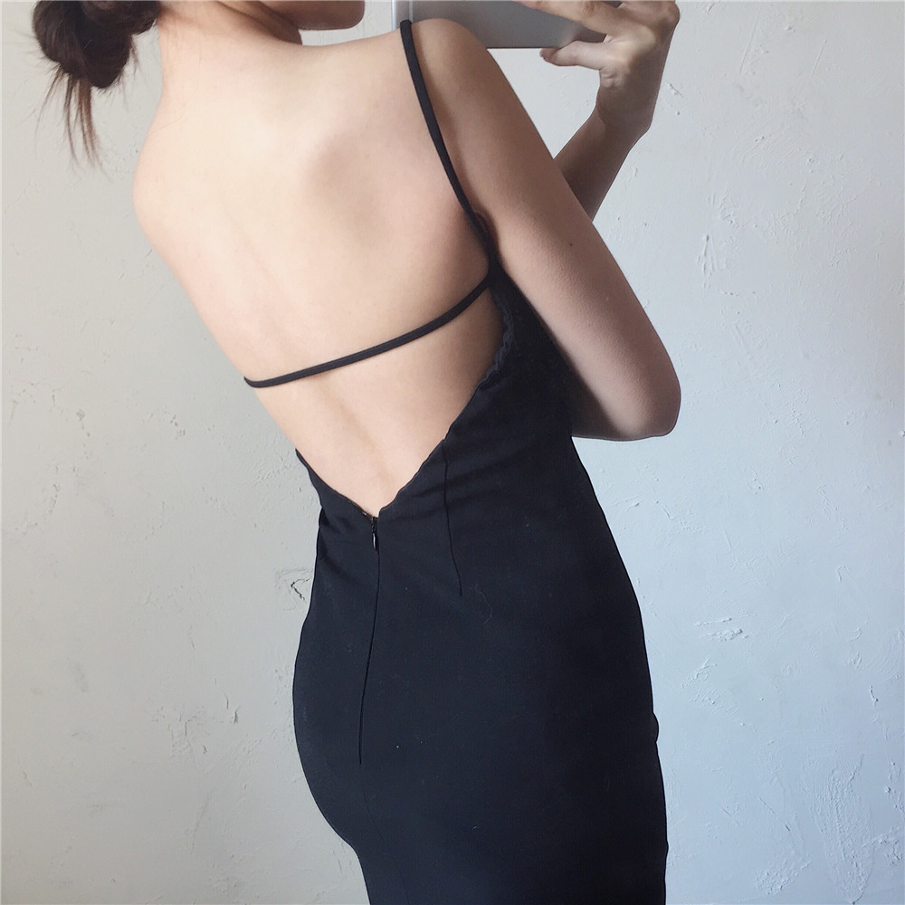 / 港味復古韓國chic風性感露背吊帶連衣裙修身顯瘦氣質純色中長裙女