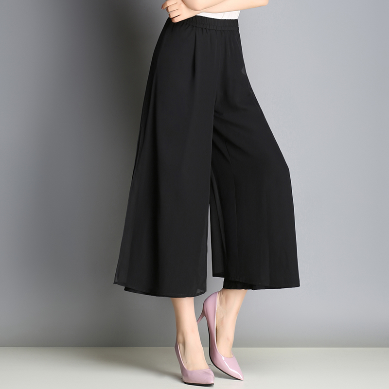 / 雪紡闊腿褲女九分褲高腰春夏季新款韓版秋黑色直筒褲休閑褲子