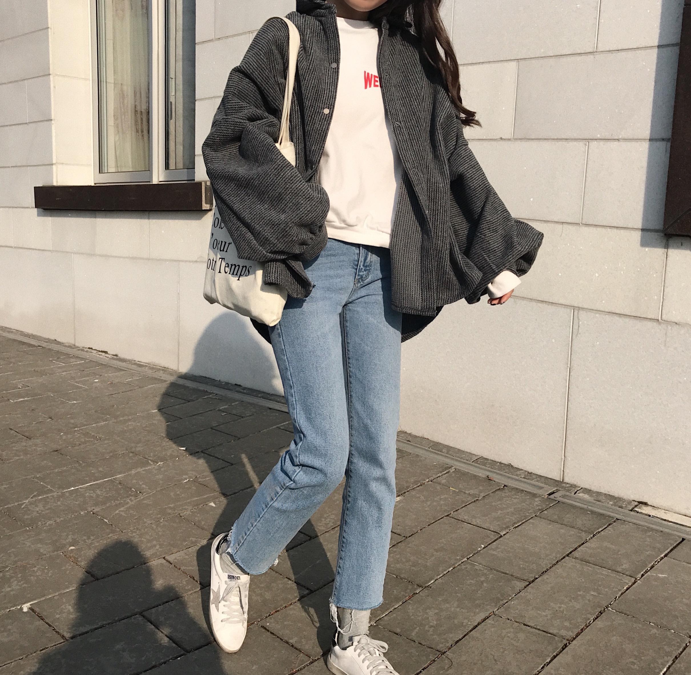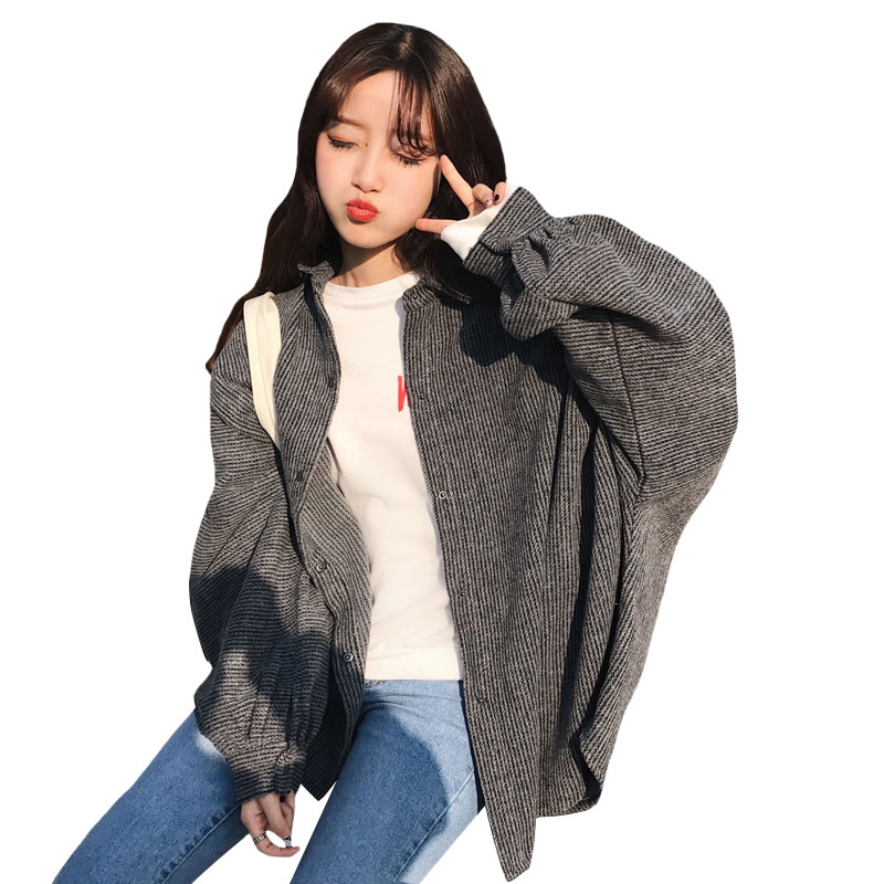 秋季2018新款韓版中長款chic條紋加厚磨毛襯衫寬松休閑襯衣外套女