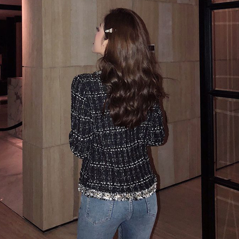 秋冬女裝2018新款學生復古流蘇毛呢短外套粗花呢格子開衫時尚上衣