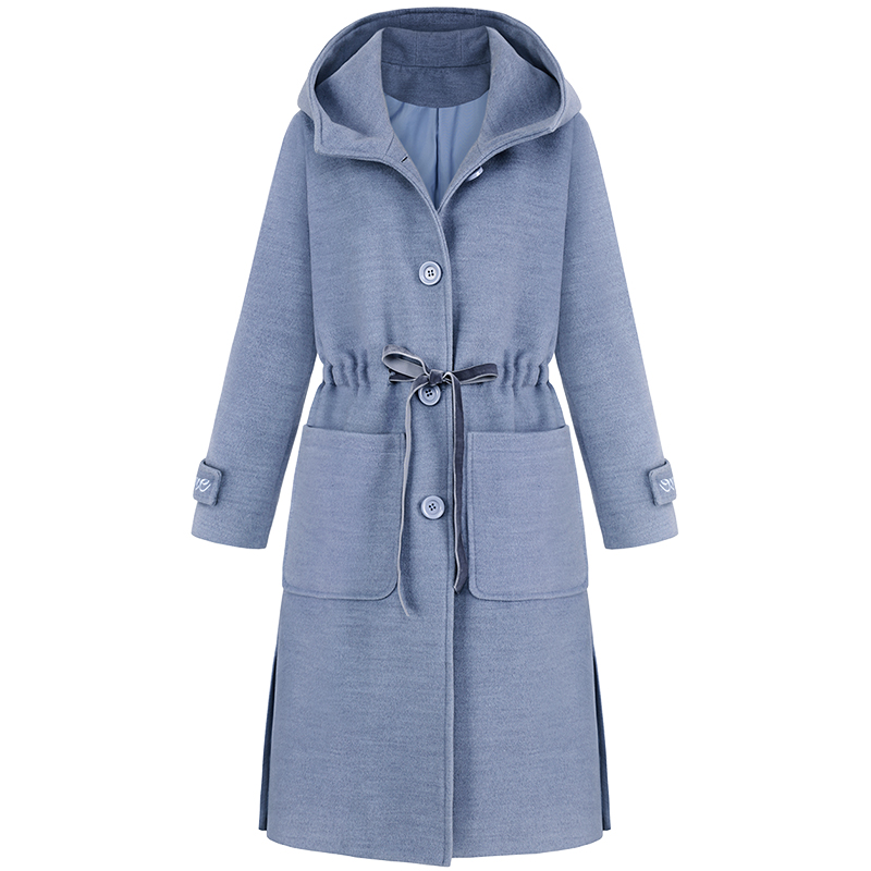 MG小象冬季連帽呢子外套女中長款過膝2018新款學生寬松毛呢大衣潮