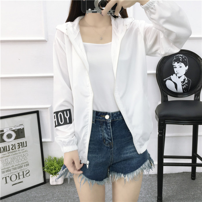 / 潮牌2017春秋新款簡約字母印花防曬帶帽薄款開衫風衣外套男學生潮