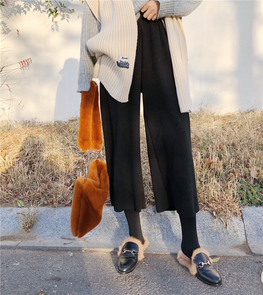 / 2018秋冬新款韓版褲子舒適松緊腰百搭純色學生闊腿褲寬松九分褲女