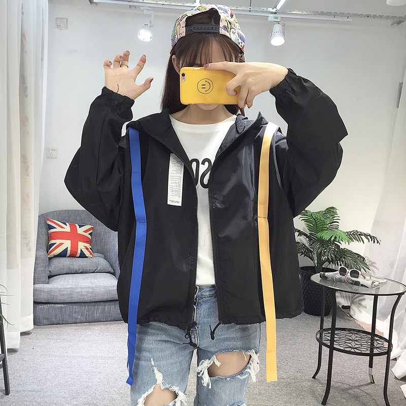 / 防曬衣女學生2017夏季新款韓版寬松bf原宿棒球服百搭飄帶薄短外套
