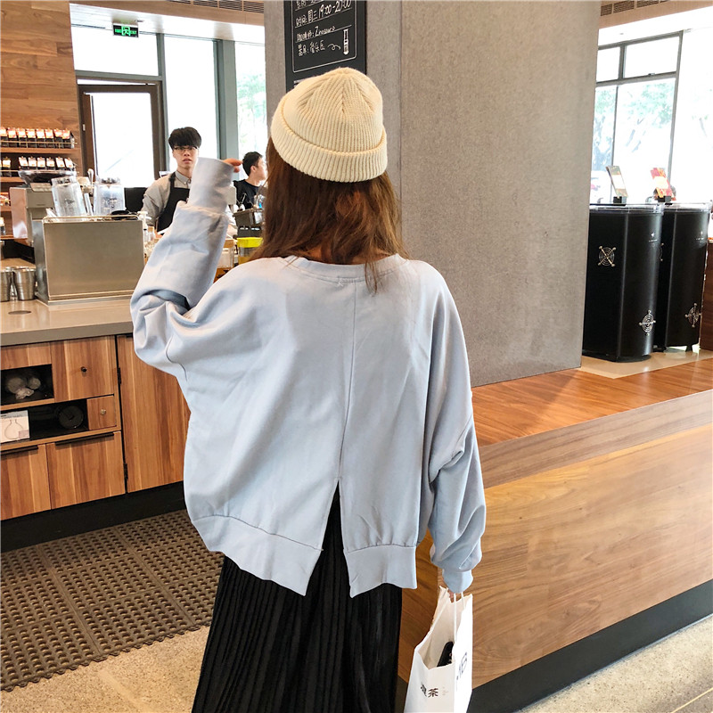 / 韓版時尚休閑套裝秋季女裝開叉衛衣外套+松緊腰壓褶半身裙兩件套