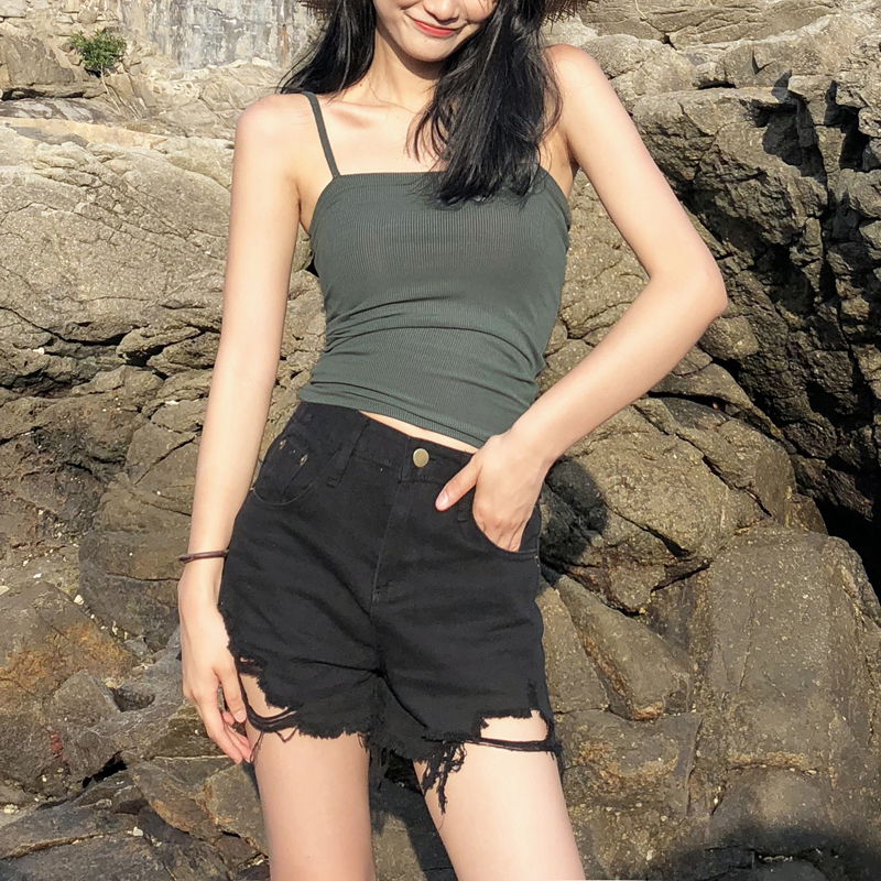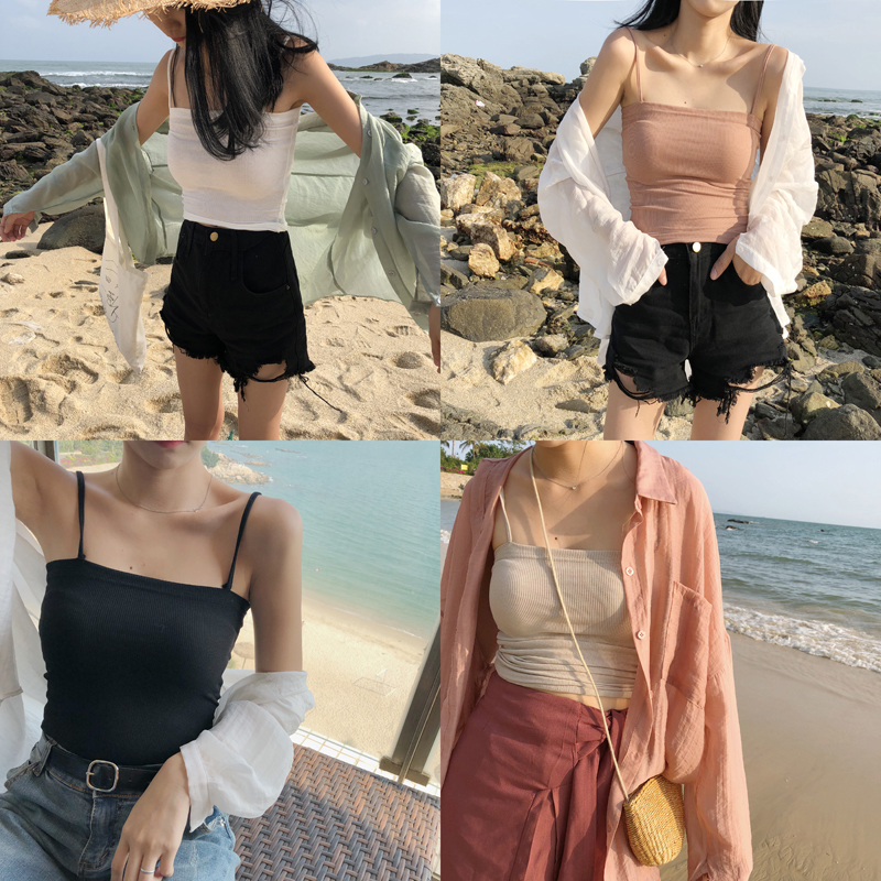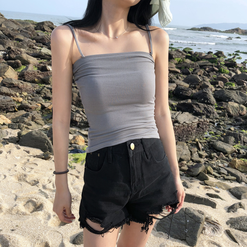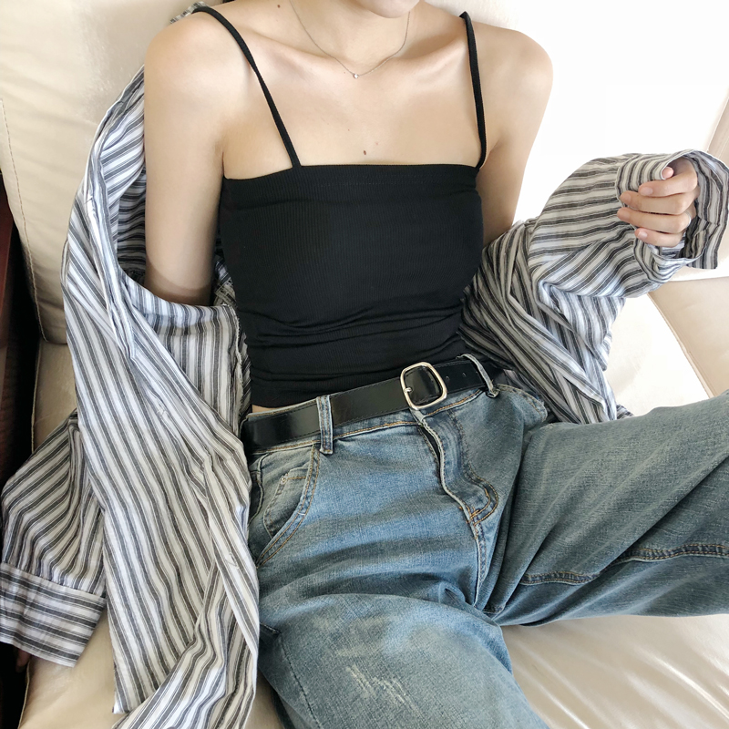 / 2018新款韓版港味復古chic百搭純色時尚修身顯瘦小清新吊帶背心女