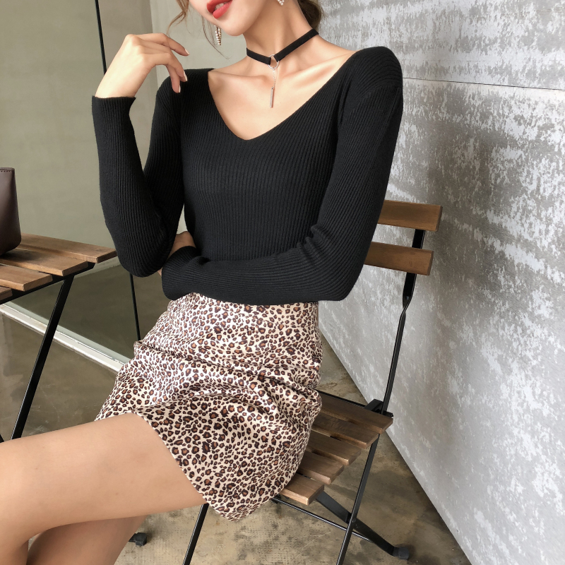 / 時尚新款純色V領長袖內搭針織衫打底毛衣套頭修身顯廋百搭女上衣