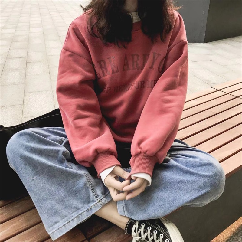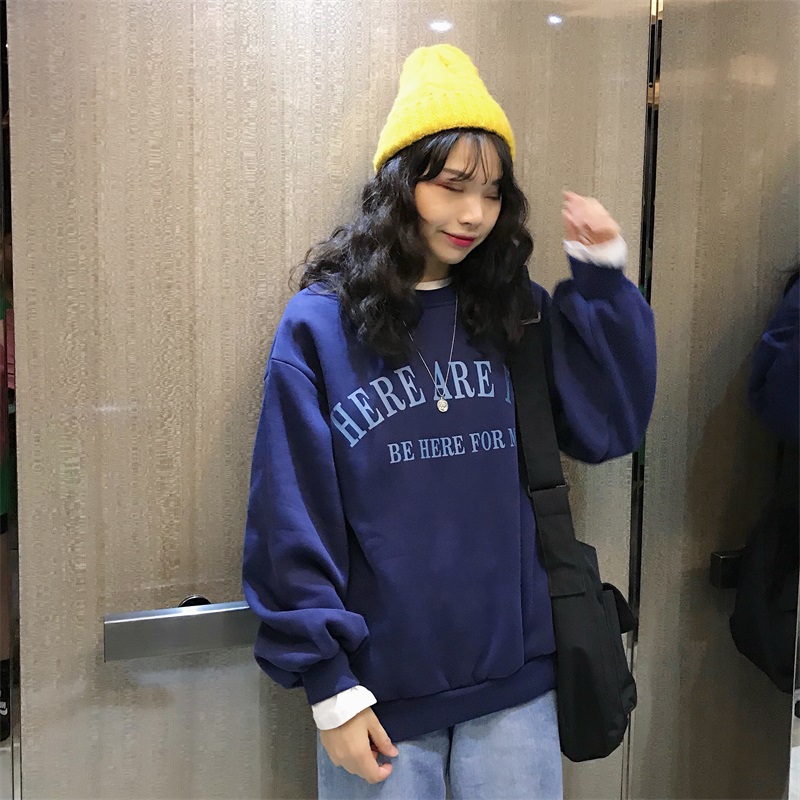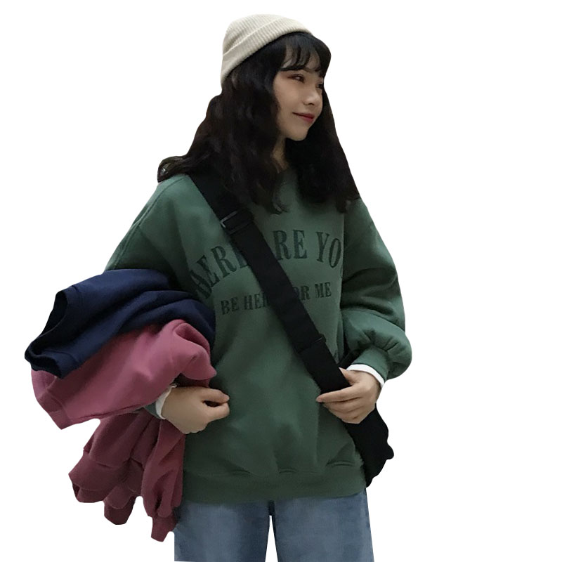2018新款秋冬韓版原宿風字母加絨加厚寬松套頭超火衛衣上衣外套女