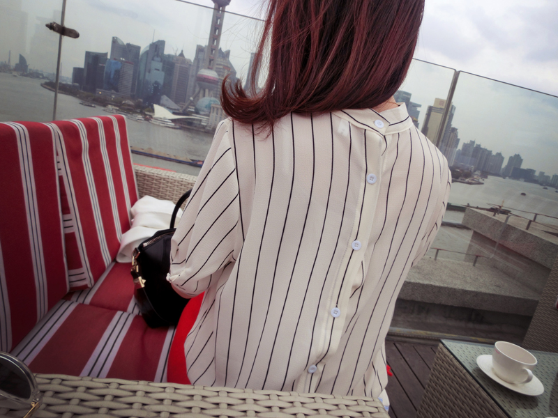/ 女雪紡衫襯衫女短袖上衣韓版豎條紋百搭學生閨蜜裝夏天衣服女裝潮