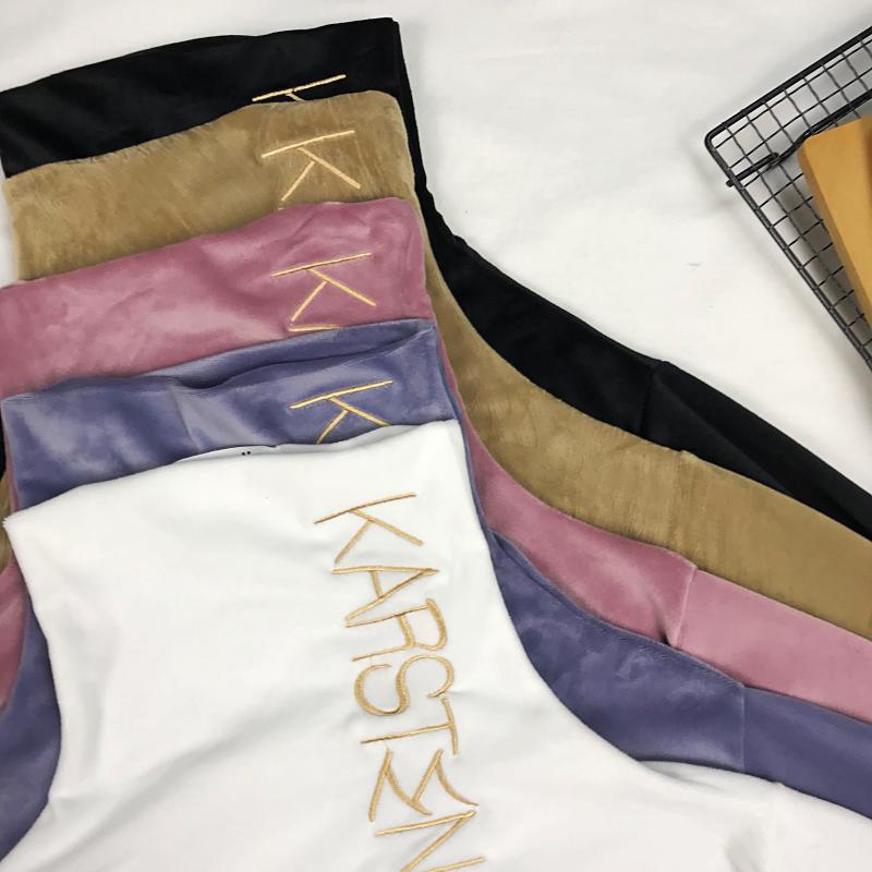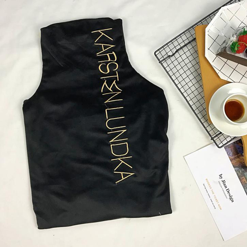 / 時尚字母刺繡打底衫女秋冬裝新款高領修身顯瘦長袖上衣絲絨T恤潮