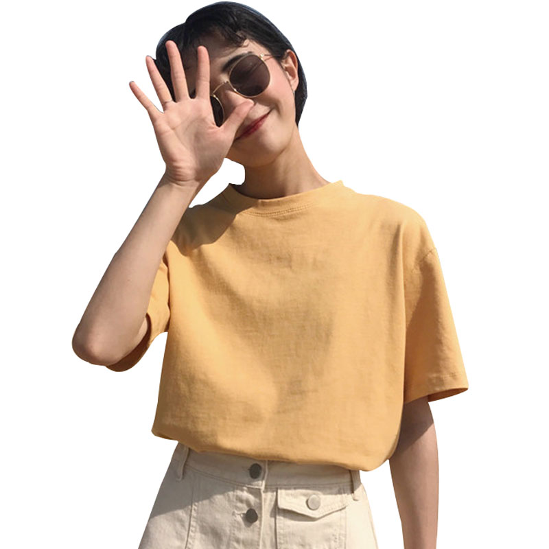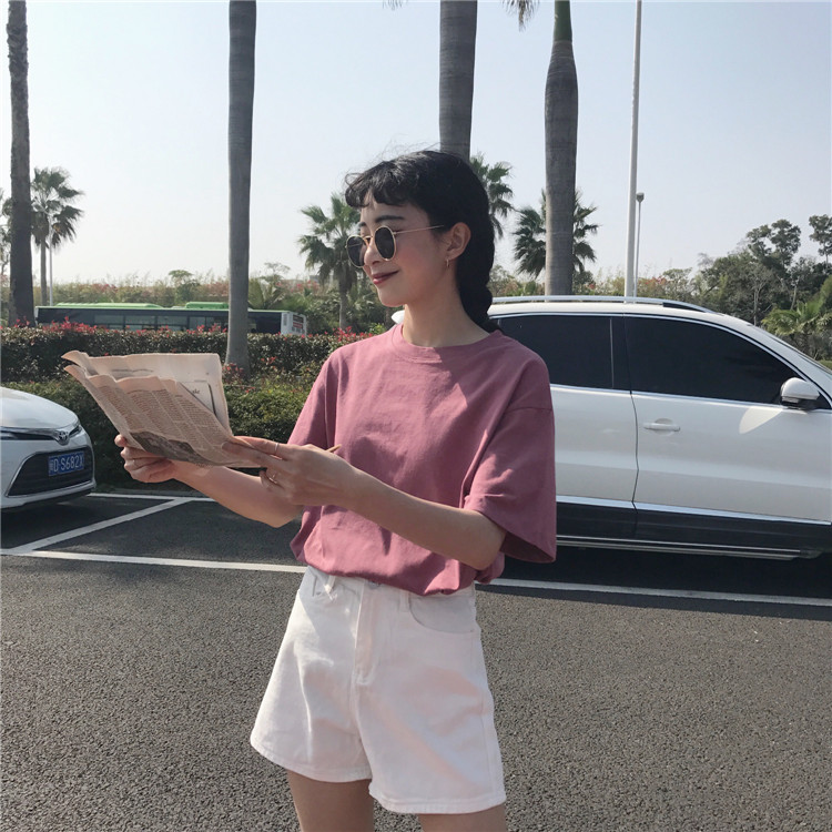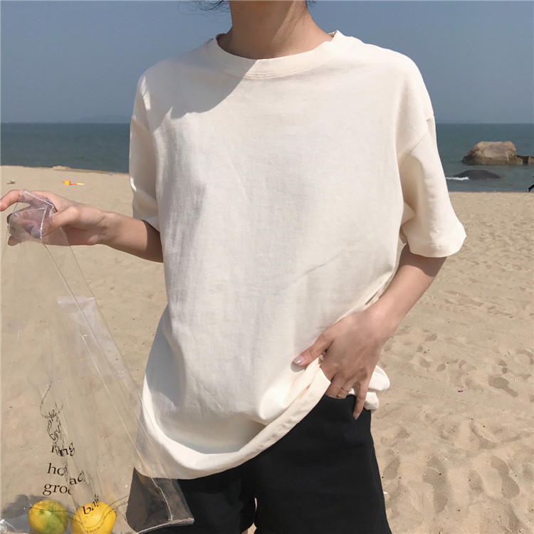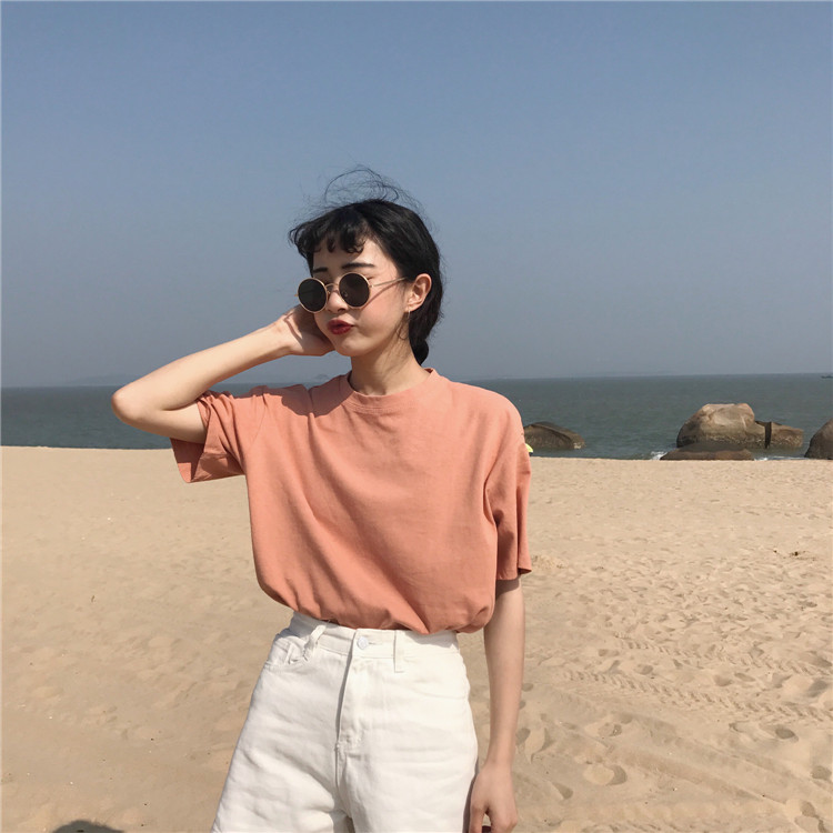 / 夏裝女裝韓版寬松簡約純色圓領短袖T恤學生休閑上衣打底衫體恤潮