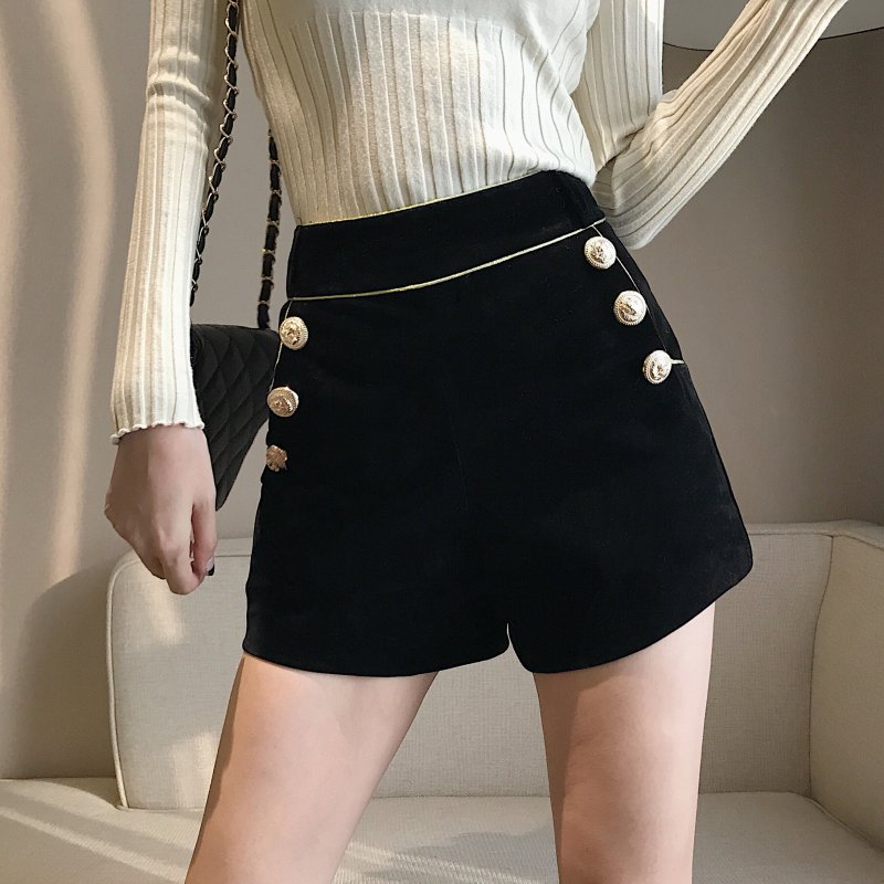 / 褲子女新款秋冬韓版百搭時尚絲絨chic雙排扣短褲A字闊腳褲靴褲潮