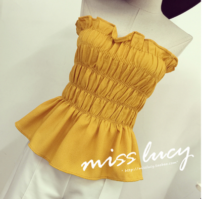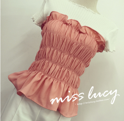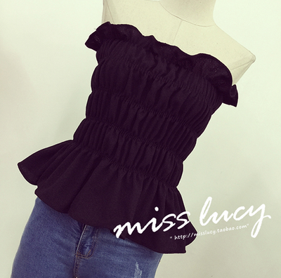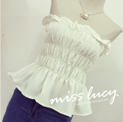 / 夏裝新款韓國甜美褶皺木耳短款抹胸裹胸女裝2017彈力修身打底上衣