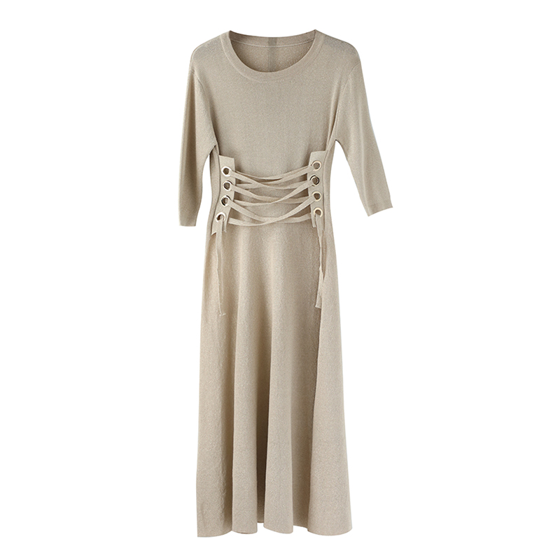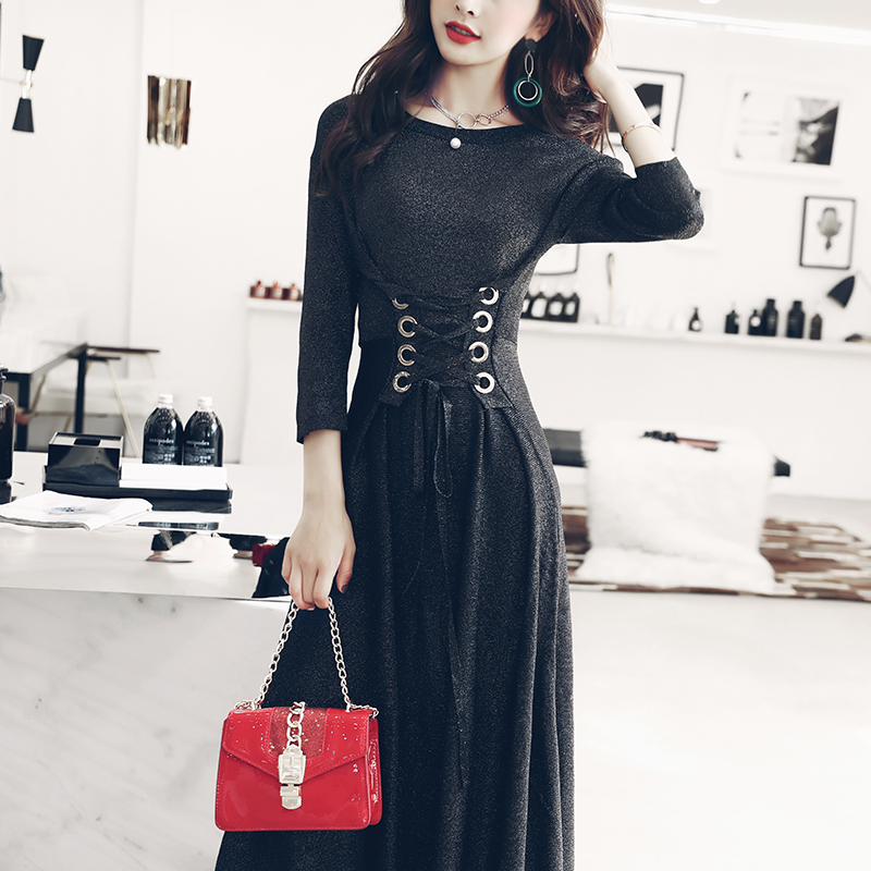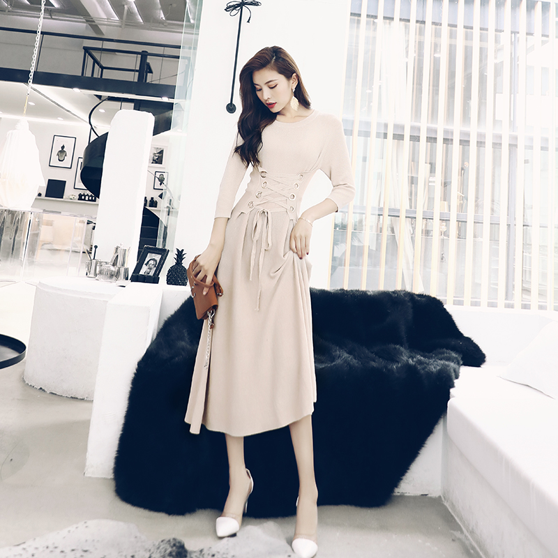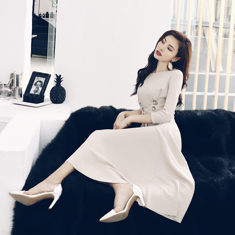名媛2018秋冬新款針織打底連衣裙收腰顯瘦女裝氣質毛衣中長款裙子