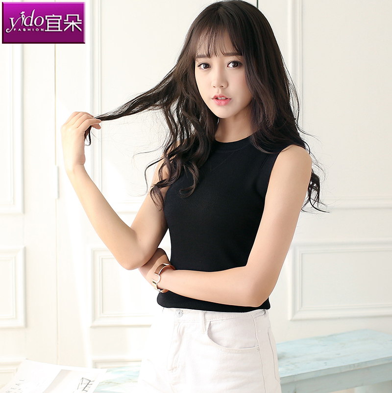 / 白色吊帶背心女內搭韓版短款性感百搭針織無袖t恤女夏打底針織衫