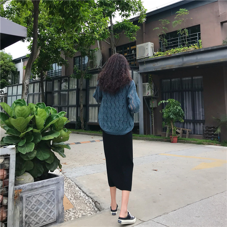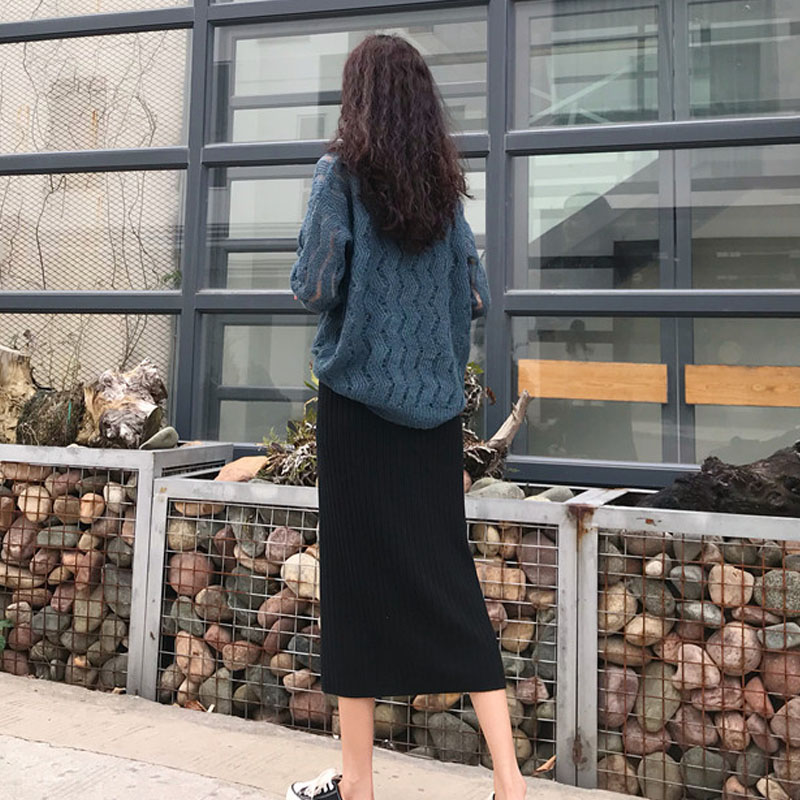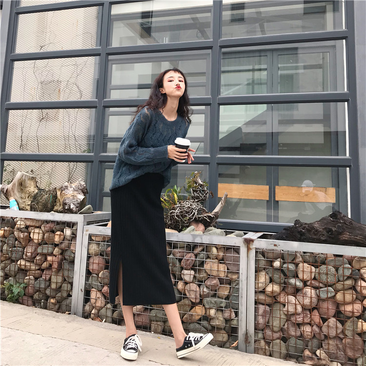 / 秋季韓版chic復古港味開叉包臀裙半身裙高腰針織裙長裙學生裙子女