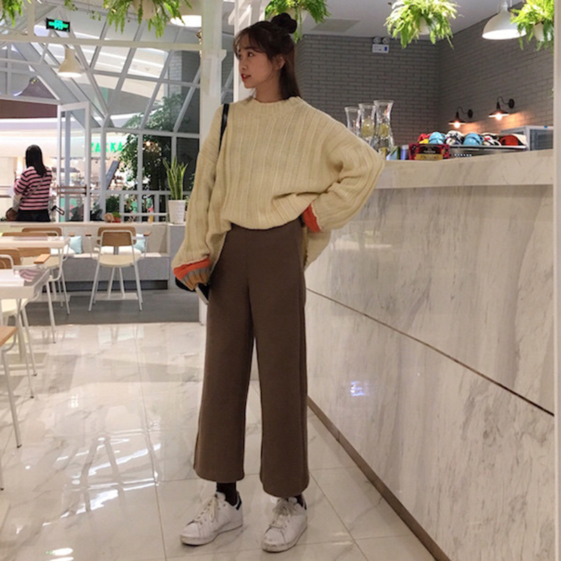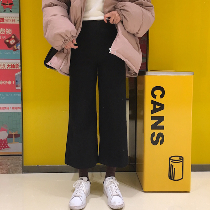 / 毛呢褲子女秋冬裝2018新款韓版學生高腰顯瘦闊腿褲寬松休閑九分褲