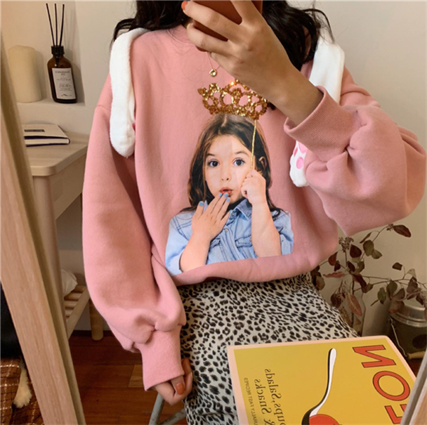 2018新款秋冬韓版寬松原宿風個性女孩加絨加厚套頭衛衣上衣外套女