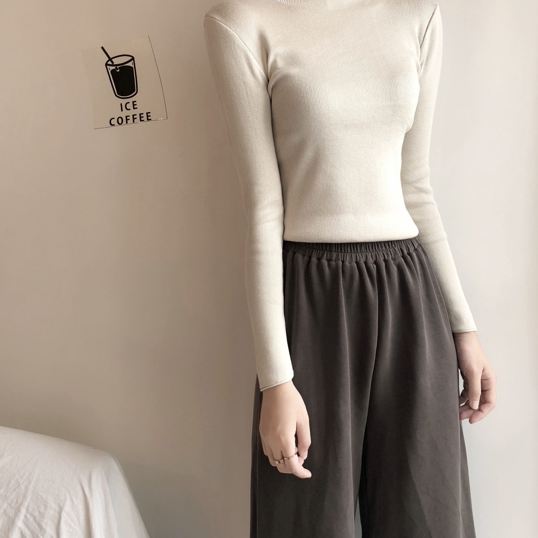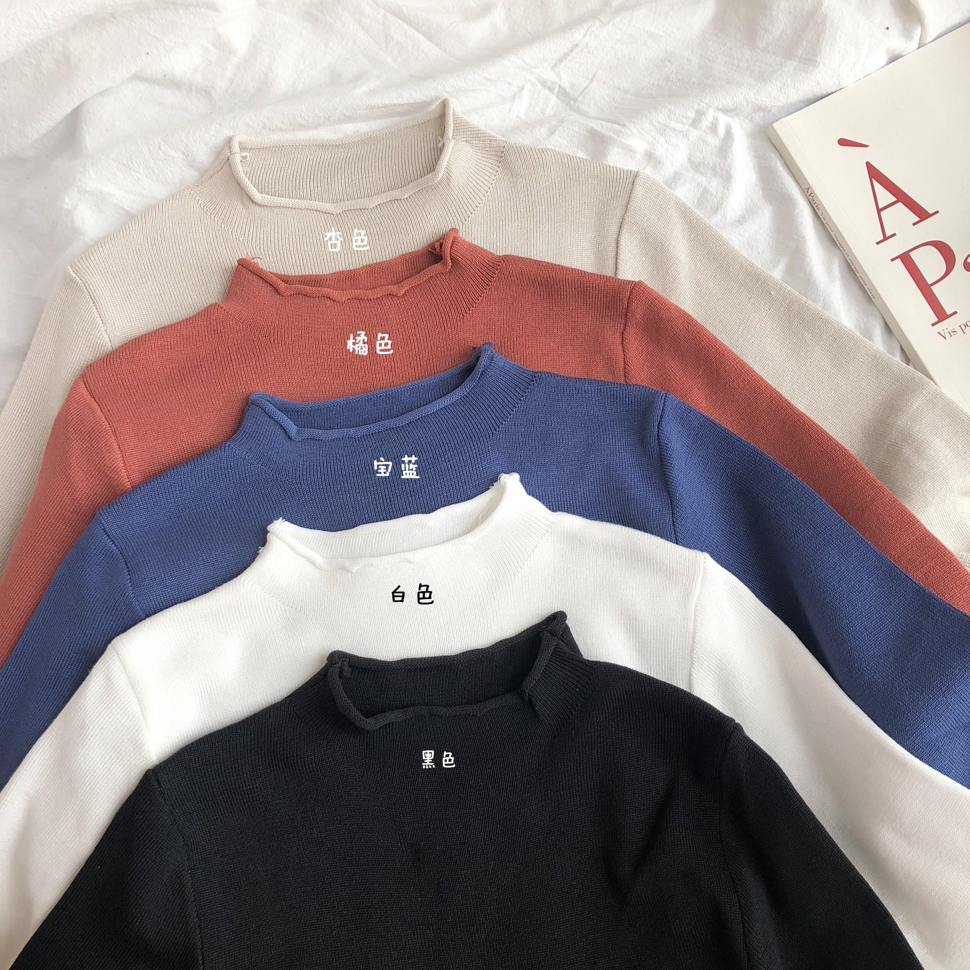 韓版半高領百搭純色套頭卷邊長袖針織打底衫毛衣女秋冬2018新款潮