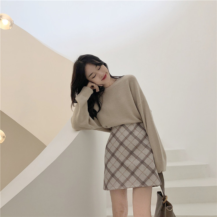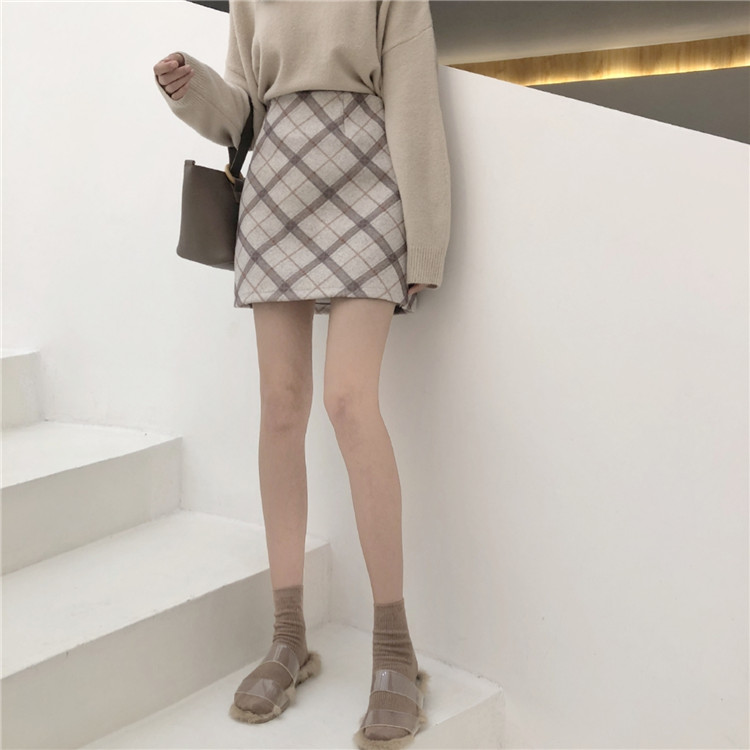 / 韓版時尚港味裙子女秋冬2018新款高腰chic百搭毛呢格子A子半身裙