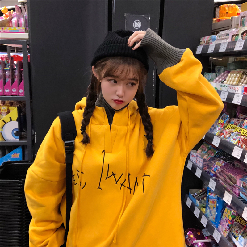 / 2018新款秋冬女裝韓版中長款慵懶風寬松拼接刺繡加絨加厚衛衣外套