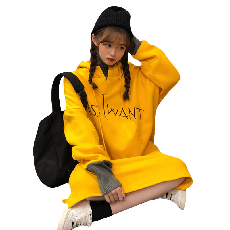 2018新款秋冬女裝韓版中長款慵懶風寬松拼接刺繡加絨加厚衛衣外套